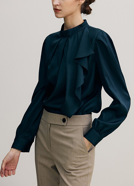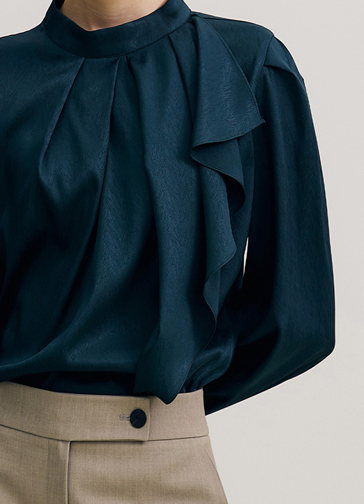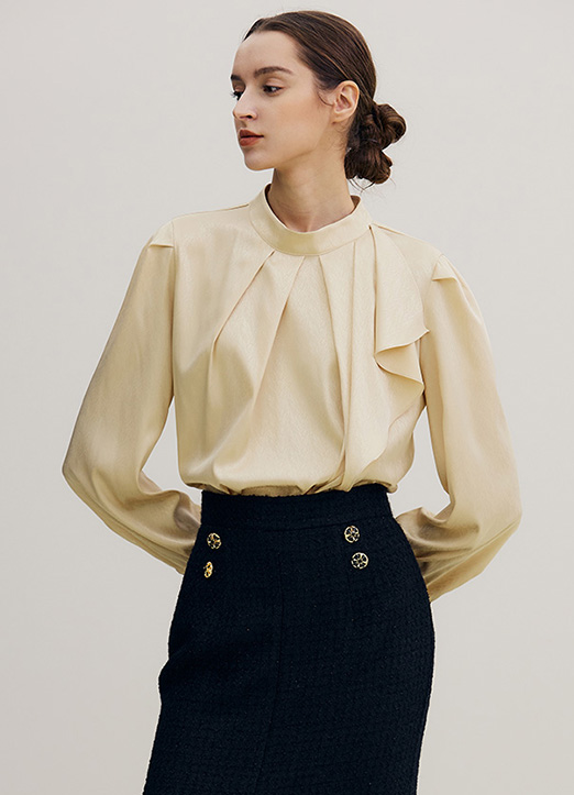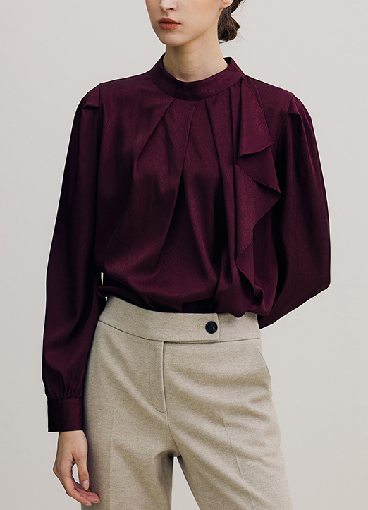 [THE ONME] ハイネックギャザーラッフルブラウス bl19319