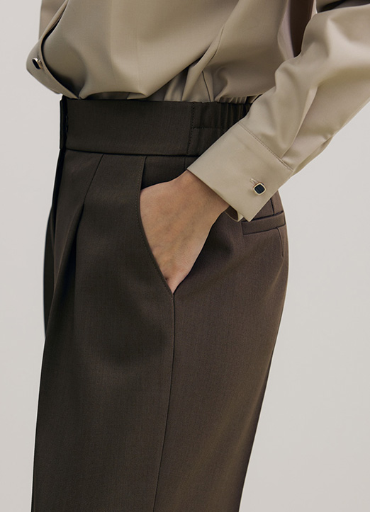 【選べる丈2種】[THE ONME] ストレッチ タックワイドスラックスパンツ pt19347