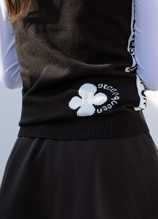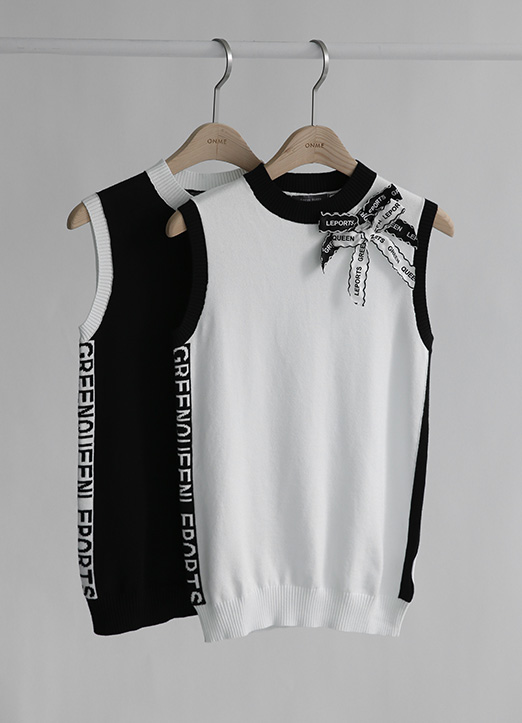 【QoG】[ゴルフウェア] リボンブローチ配色ニットベスト vt19455