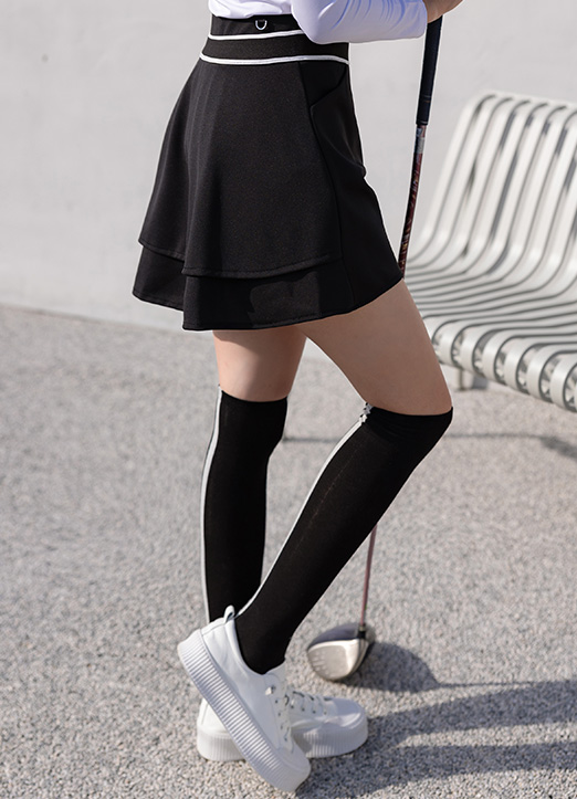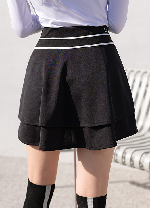 【QoG】[ゴルフウェア] アシンメトリーミニ ティアードスカート(インナーパンツ付き) sk19459