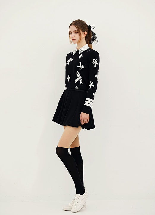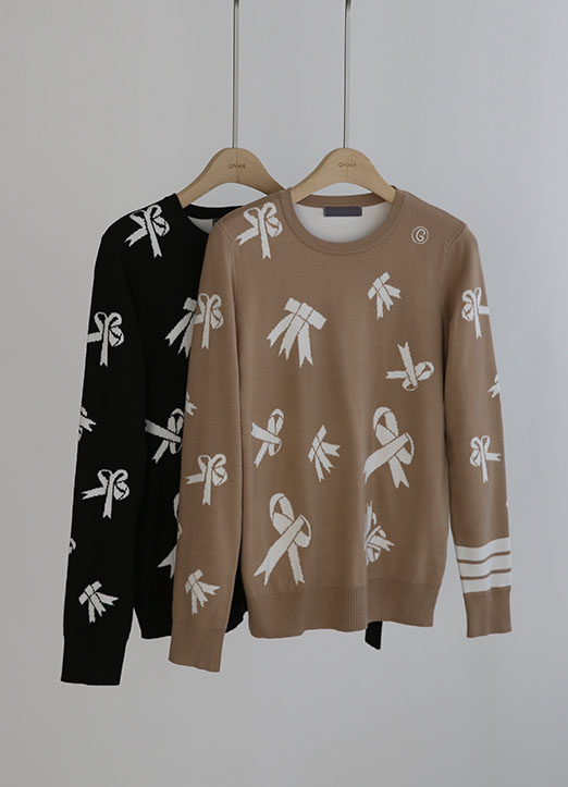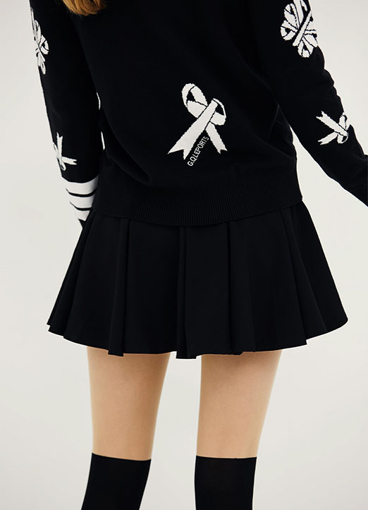 【QoG】[ゴルフウェア] リボンプリント クールネック ニットトップス nt19479