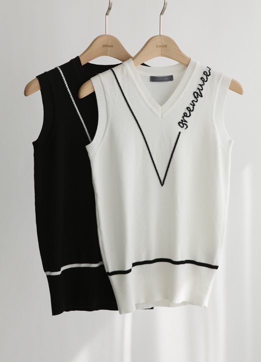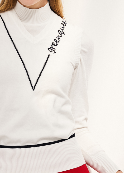 【QoG】[ゴルフウェア] ロゴプリントⅤネックニットベスト vt19670