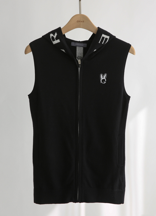 【QoG】[ゴルフウェア] フード付きロゴプリントニットベストvt19796