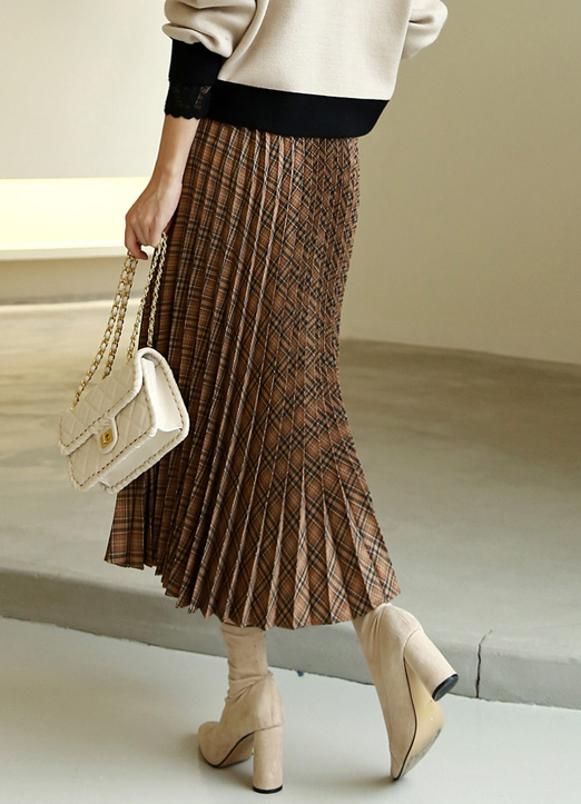 브라운 톤 안에서 다채롭게 구성된 체크 패턴으로