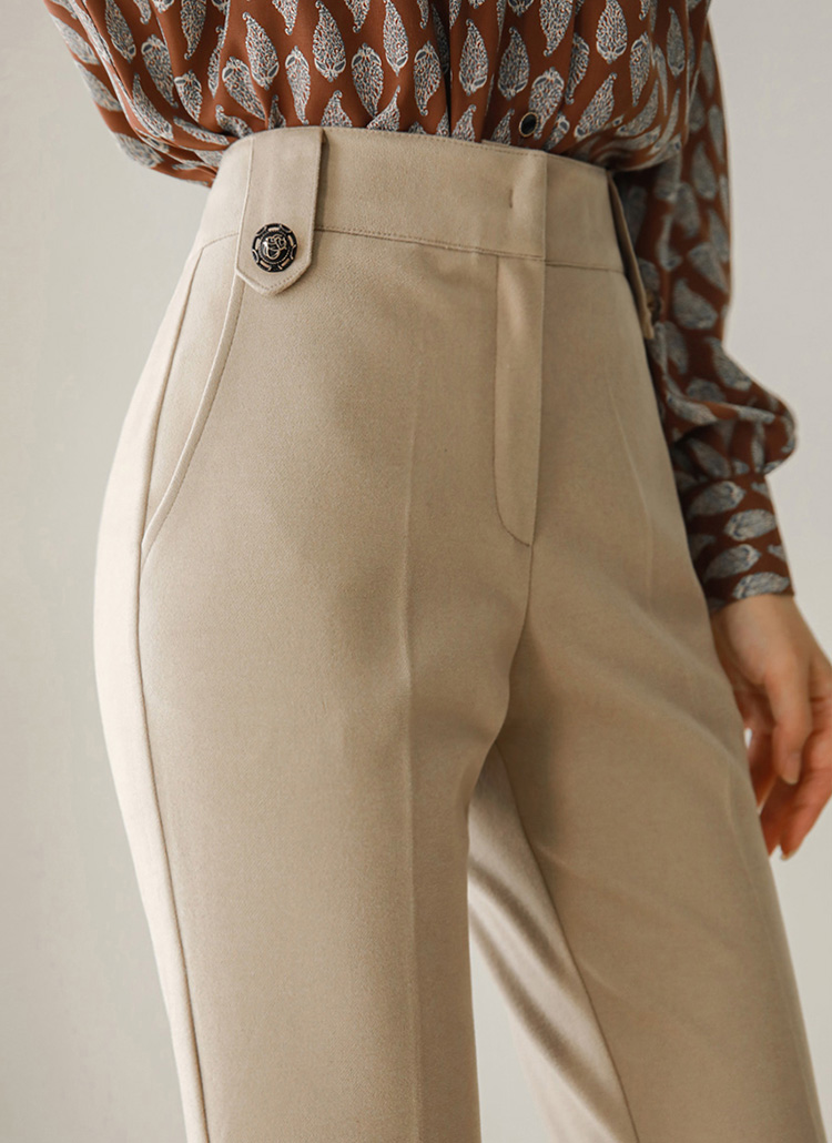 세미부츠컷이 깔끔하게 연출해주며 비조버튼으로 고급스러움이 느껴지는 슬랙스