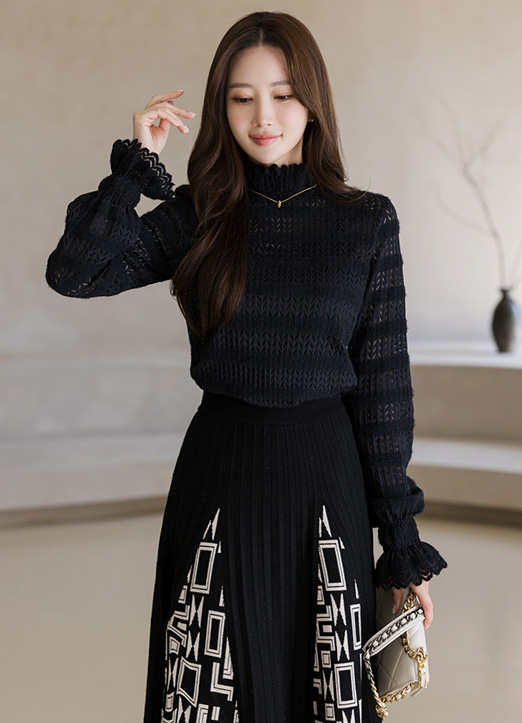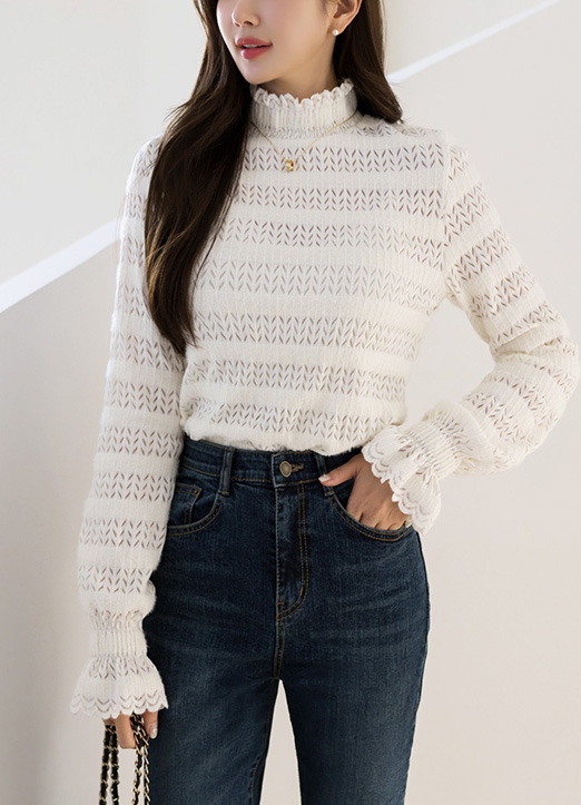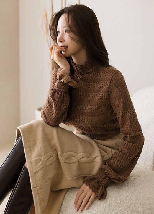 프릴 레이스 디테일로 페미닌한 포인트를 주었으며