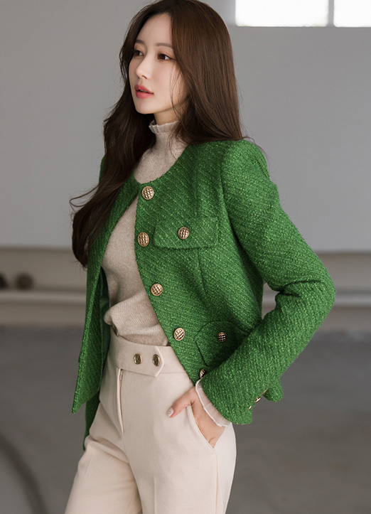 울이 혼방된 트위드 소재로 고밀도의 탄탄한 소재로