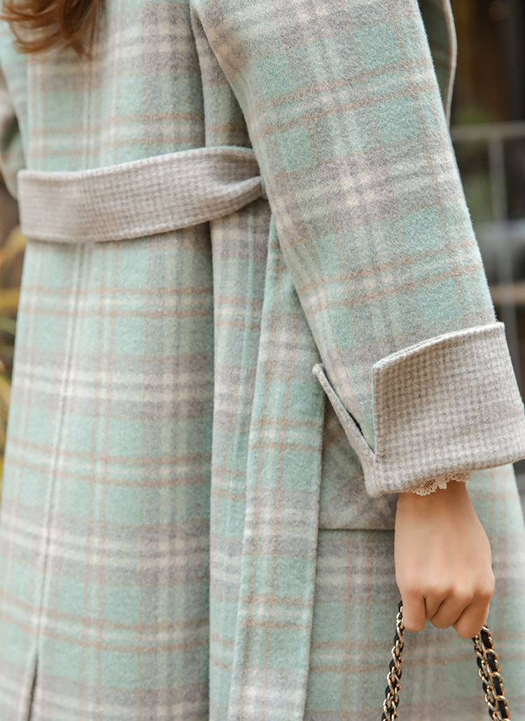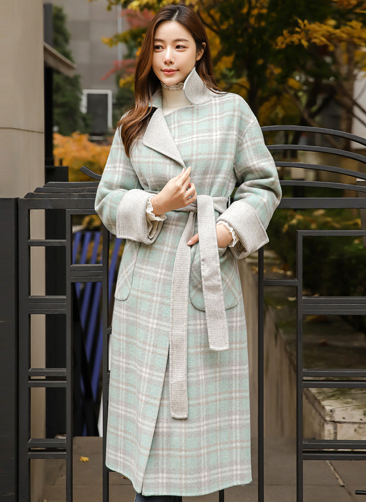 큼직한 크기의 타탄체크에 카라 안쪽에 다른 체크 배색으로