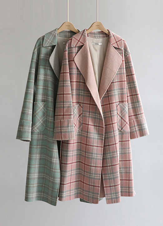 큼직한 크기의 타탄체크에 카라 안쪽에 다른 체크 배색으로