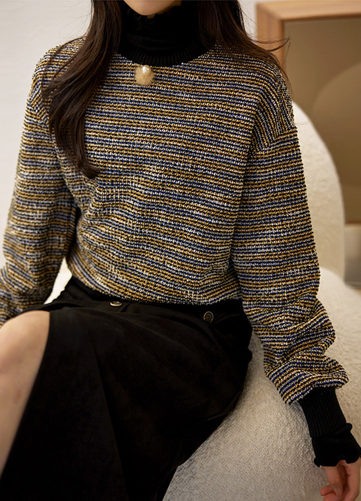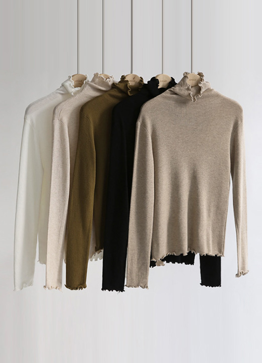 끝단이 물결 라인으로 연출된 골지 폴라티셔츠에요~