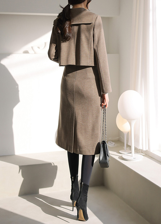 앞 부분은 깔끔하게 테일러드 카라 스타일로~