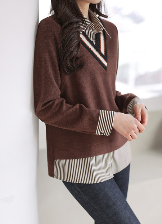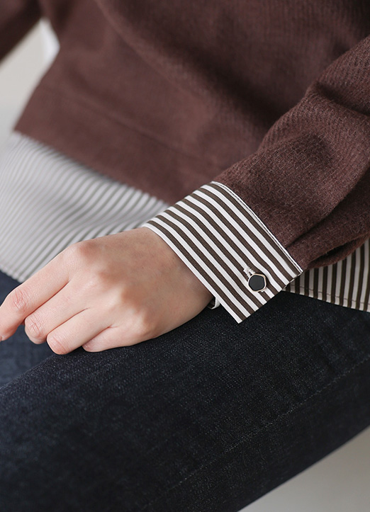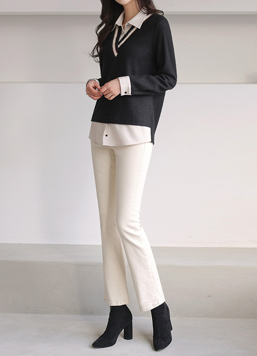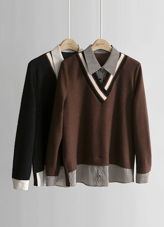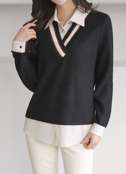 도톰한 니트 소재에 사락사락 셔츠 배색으로