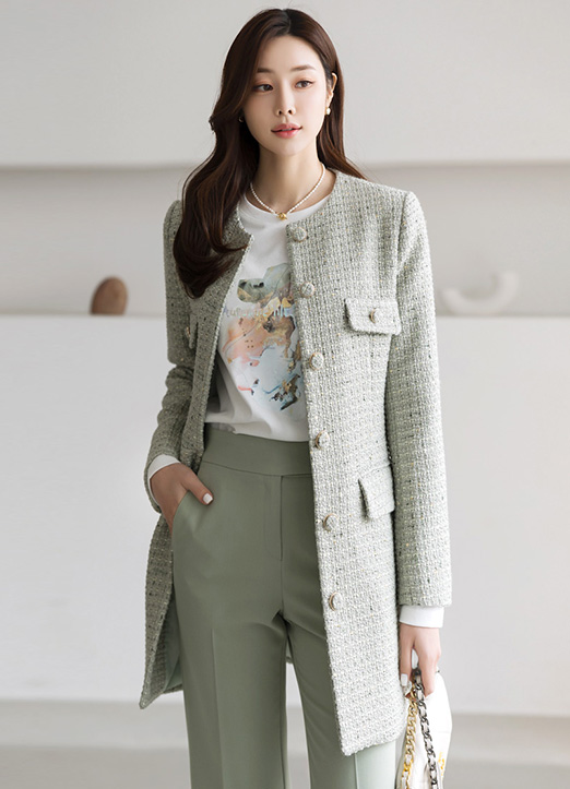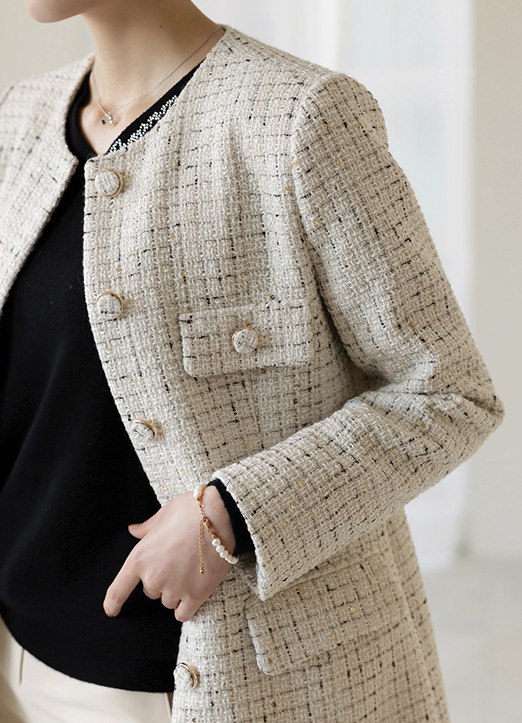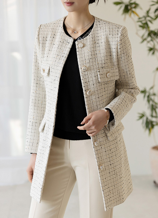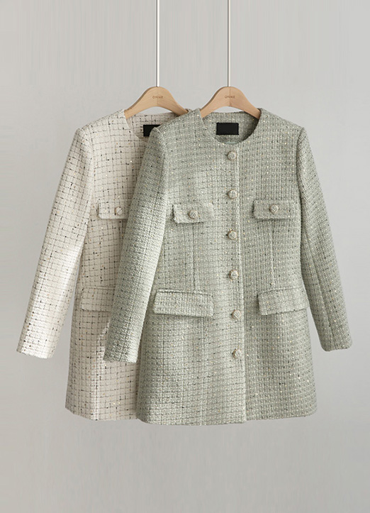 하프롱 기장으로 멋스러움이 더해진 트위드 자켓
