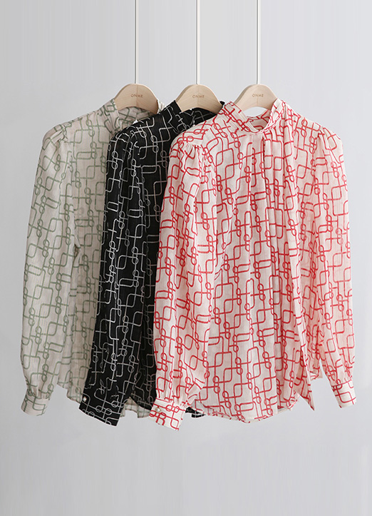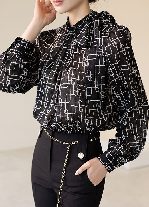 은은한 펄라인으로 화사하게 연출되는 우아한 패턴 블라우스
