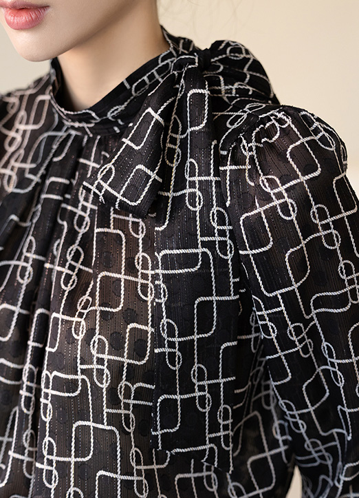【アナウンサー着用】[Louis Angel] 2WAYリボンタイ 幾何柄シャイニーシフォンブラウス bl22682