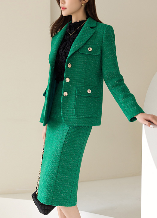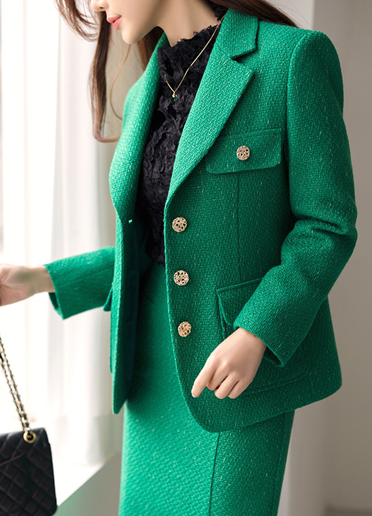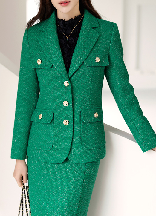 【セットアップ可能】[Louis Angel] ゴールドボタンスリムラインツイードジャケット jk22694