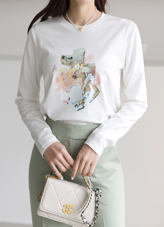 물들인 듯한 수채화 프린팅이 소프트한 무드를 연출해주며