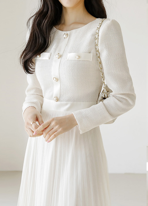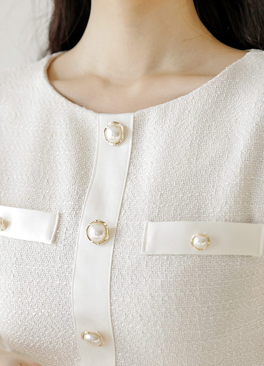 트위드 자켓 느낌으로 고급스레 표현된 상의와