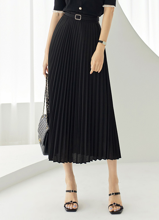 밴딩에 펄골드 라인으로 독보적인 디테일을 더한 플리츠 스커트