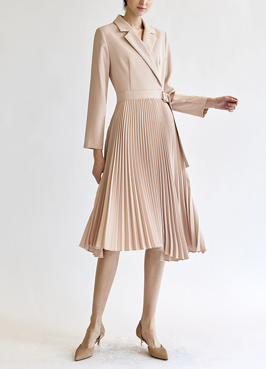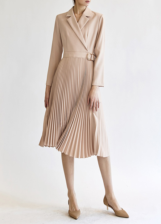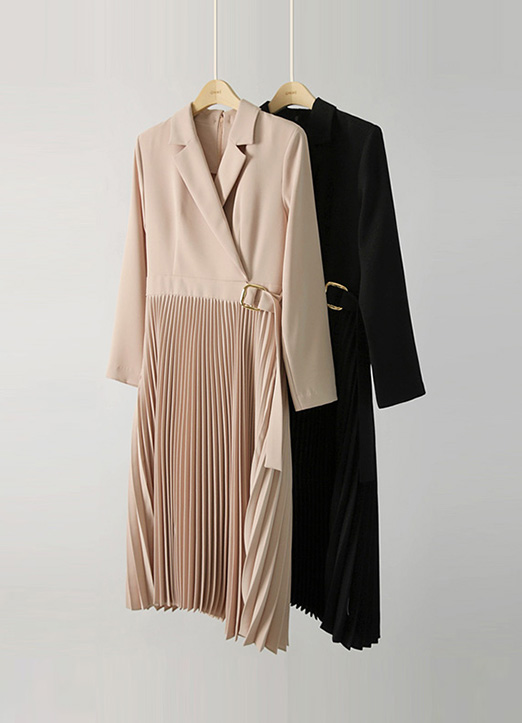 [THE ONME]サイドベルトプリーツワンピース op22930