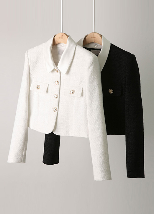 적당한 두께감의 깔끔한 트위드 원단으로 간절기 시즌에 딱 좋으며