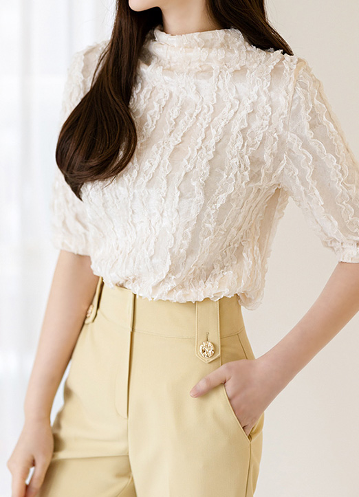 벨벳과 러플이 더해져 우아한 고급스러움이 가득한 블라우스
