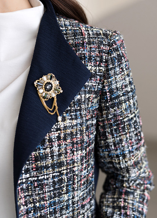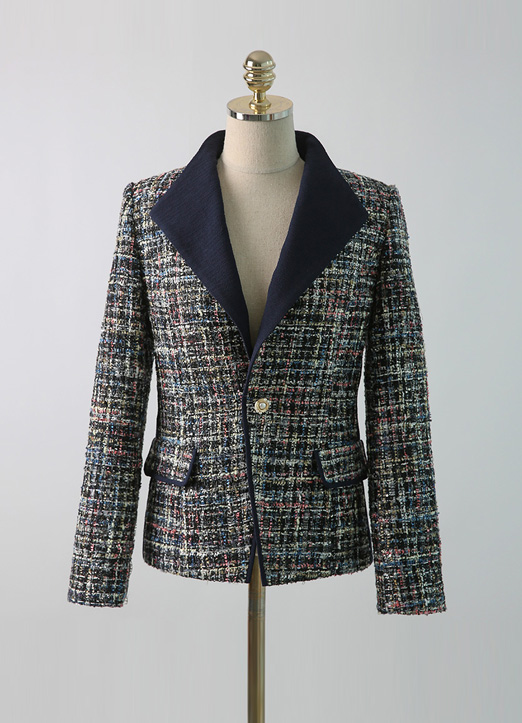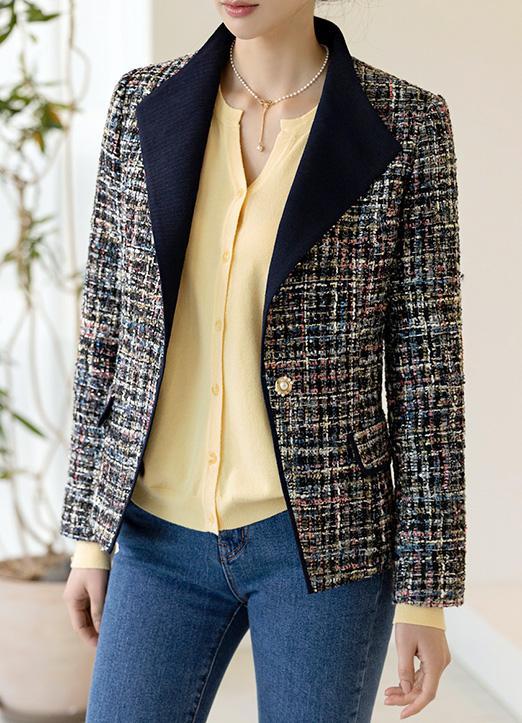 오픈카라로 고급스러움이 느껴지는 슬림 트위드 자켓