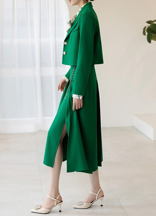 다트 핀턱으로 잡아준 라인감으로 허리선이 살짝 잡혀있어