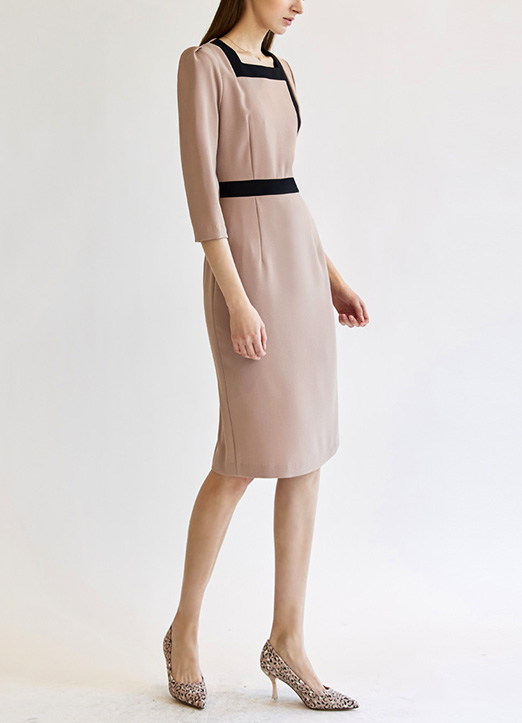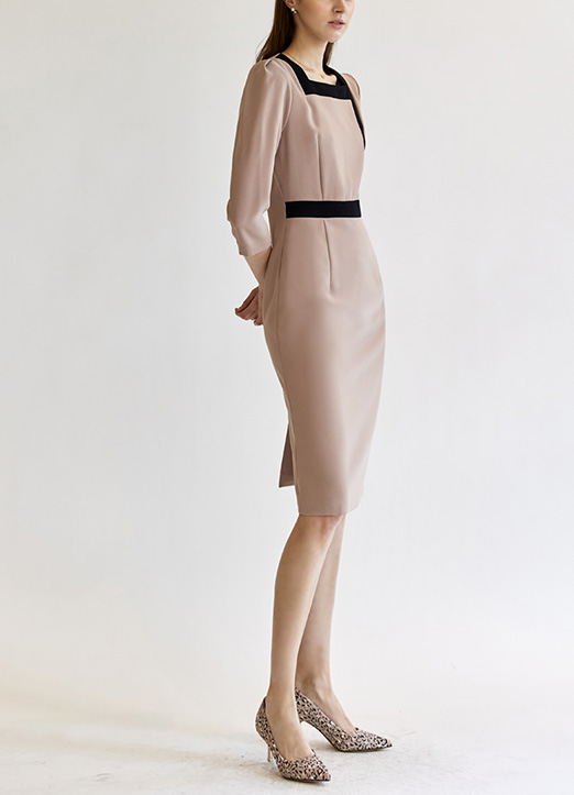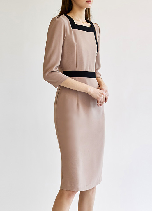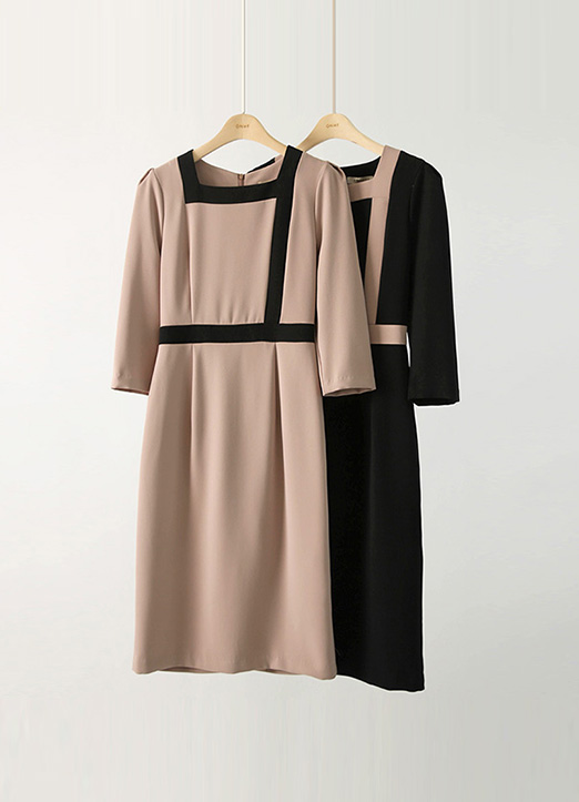 [THE ONME] バイカラースクエアネック7分袖ワンピース op23419