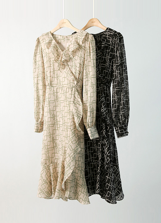 체인 패턴을 더해주어 원단 퀄리티부터 고급지게 돋보이는 매력만점 원피스!