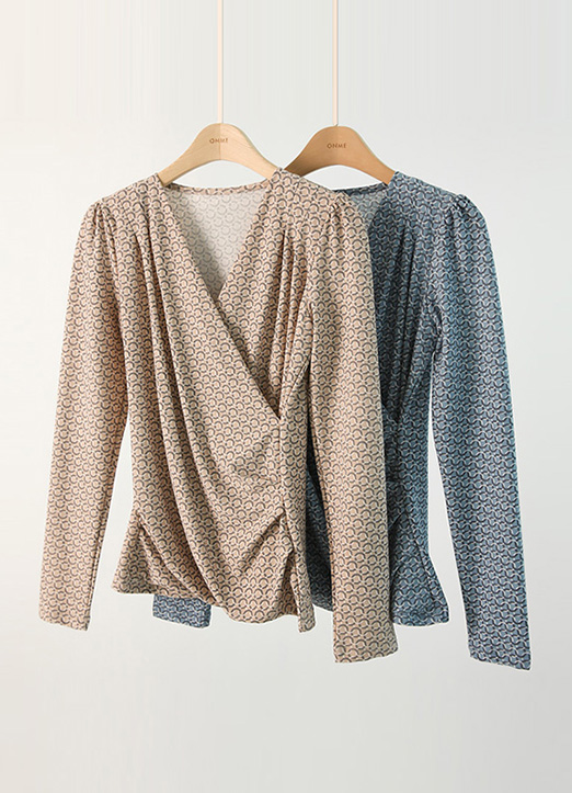 [Louis Angel] ラップデザイン幾何柄シャーリングブラウス bl23431