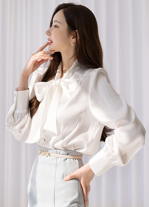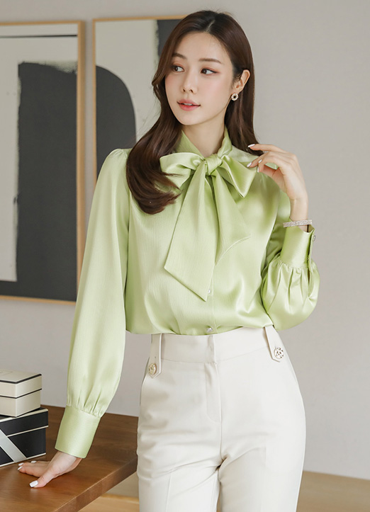 [Louis Angel] シャイニーサテンリボンタイブラウス bl23539