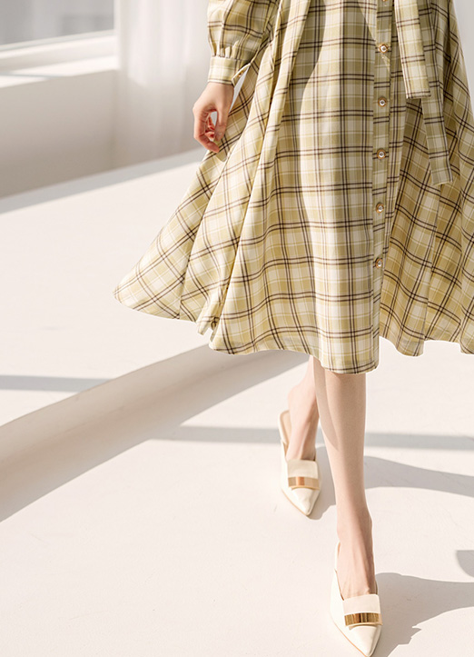 살짝 잡힌 허리선과 아래로 퍼지는 플레어 라인이라