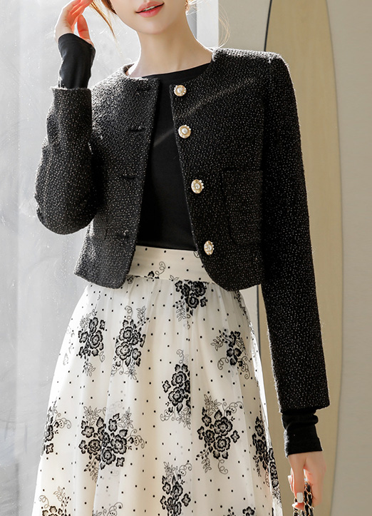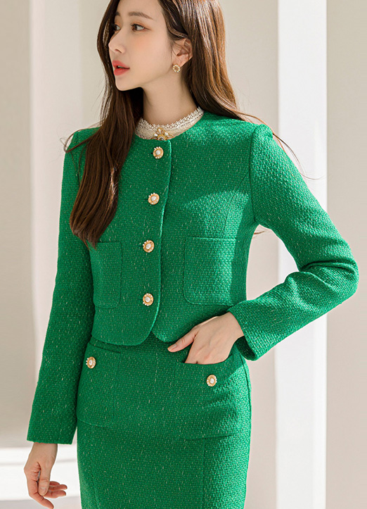【セットアップ可能】[Louis Angel] パール釦ノーカラークロップド ツイードジャケット jk23607
