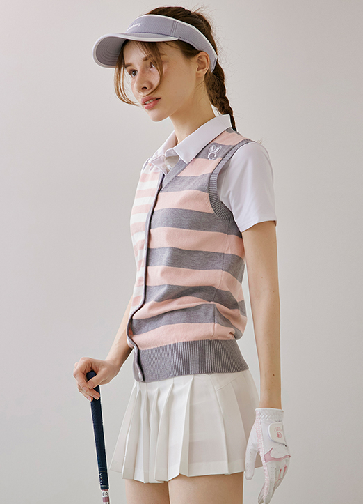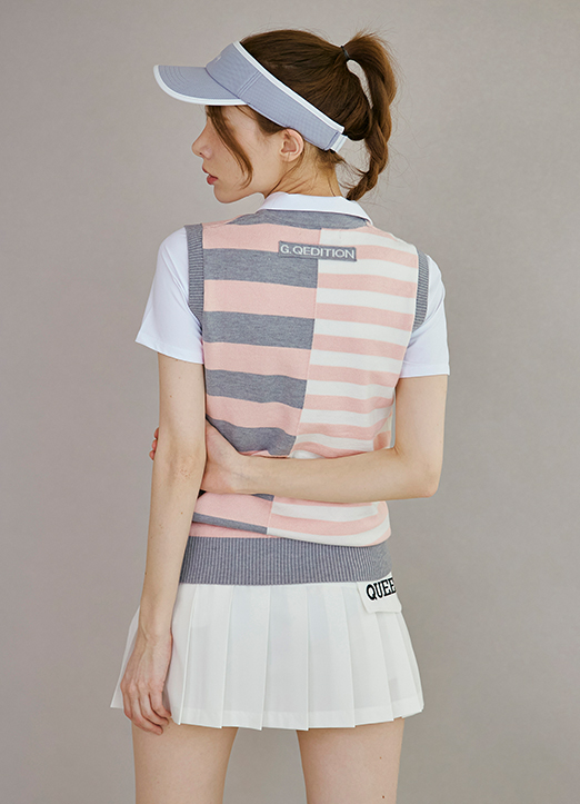 [QoG] マルチボーダー配色ニットベスト vt23835