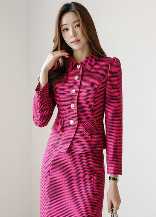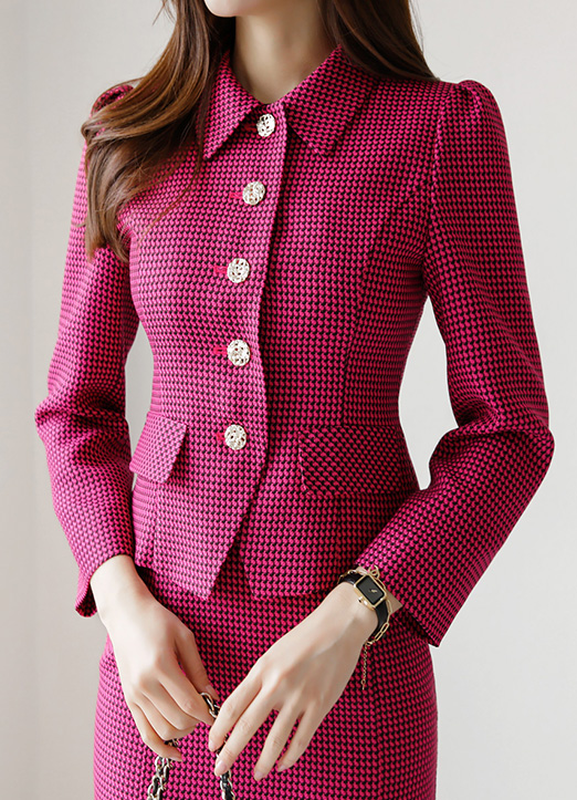 [Louis Angel] 千鳥格子ゴールド釦スリムクロップドジャケット jk23879