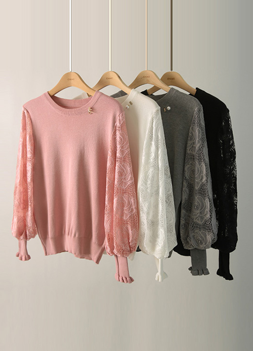 【企画特価】ブローチ付きフラワーレーススリーブドッキングニット nt24084