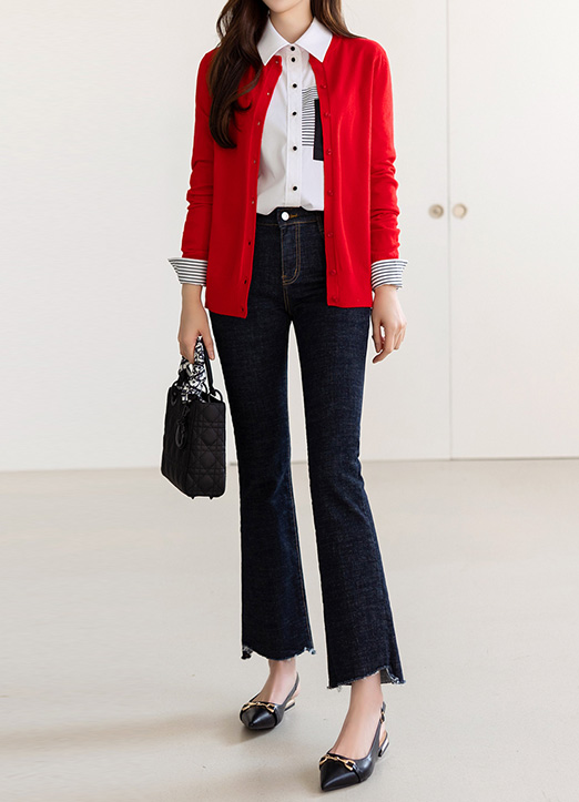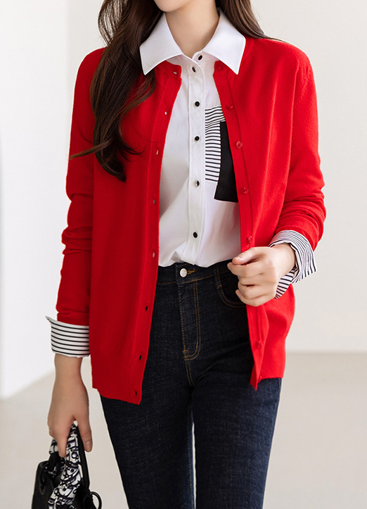 라운드넥으로 깔끔하고 활용도가 높은 가디건이에요 :)