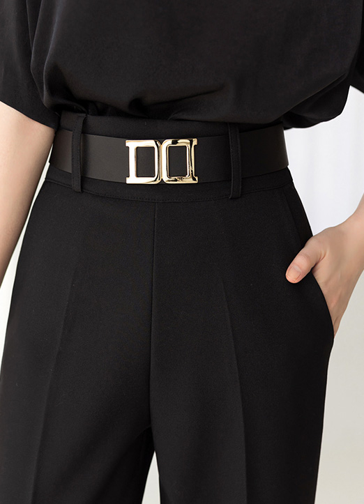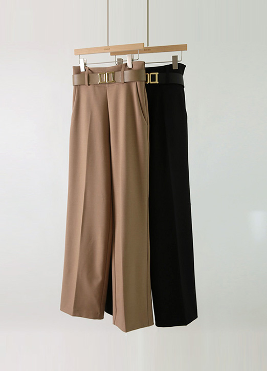 볼드한 골드 버클이 더해진 벨트로 멋스러움이 가득한 롱 와이드 슬랙스에요 :)