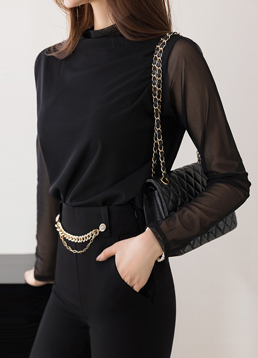 モックネックシアースリーブプルオーバー bl24419