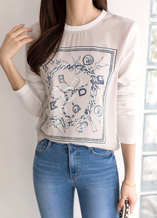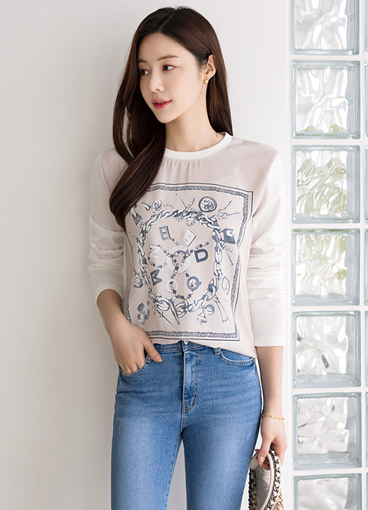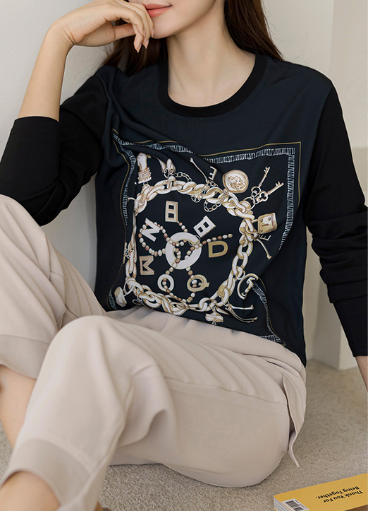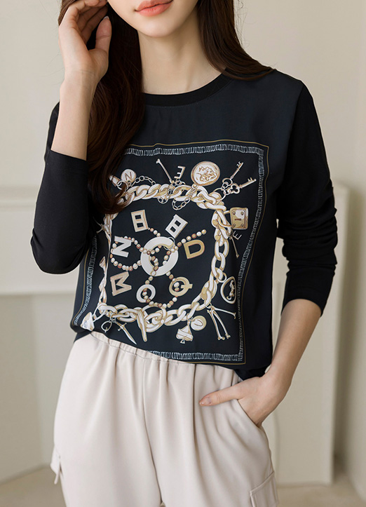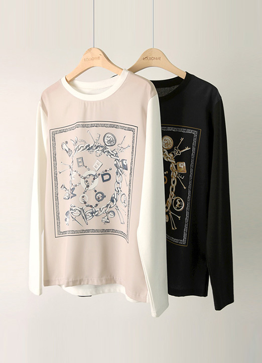 [Louis Angel] レトロ風チェーンプリント切り替えプルオーバー ts24615