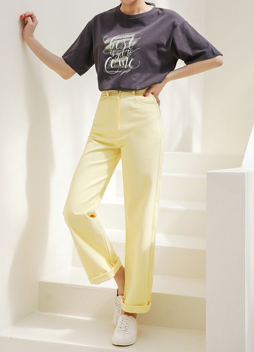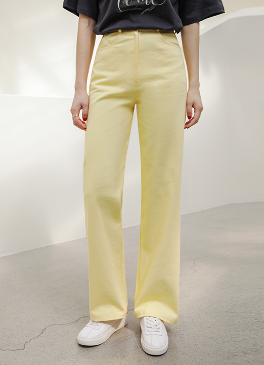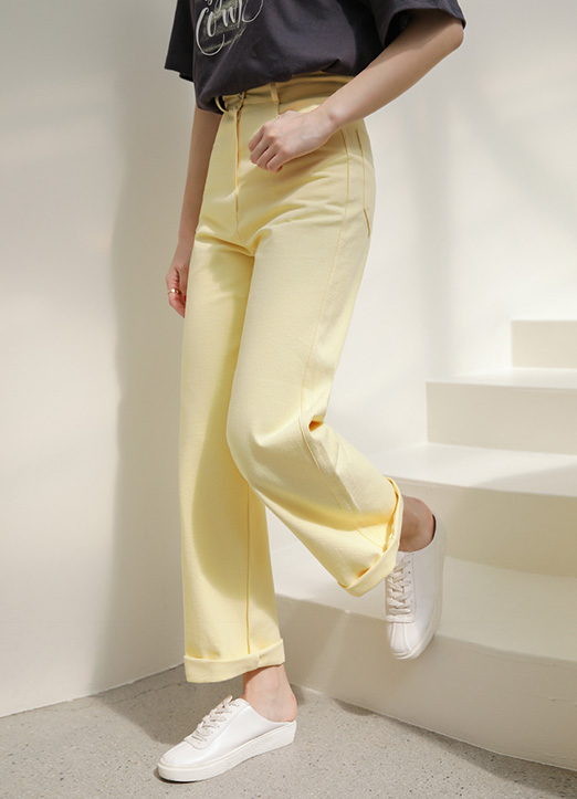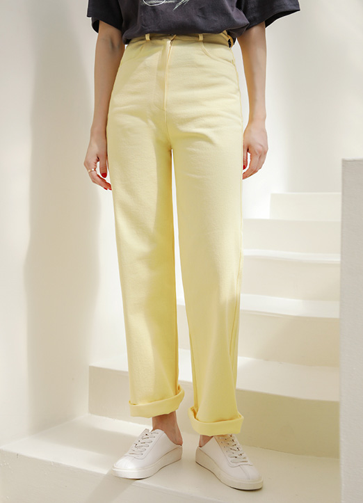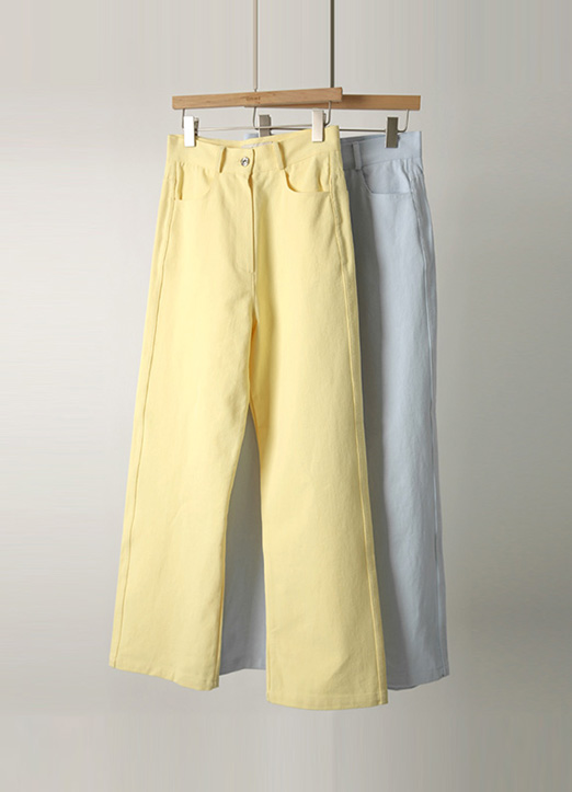 더욱 롱한 레그라인을 연출해주는 파스텔 컬러감의 코튼 팬츠에요 :)