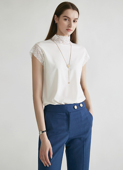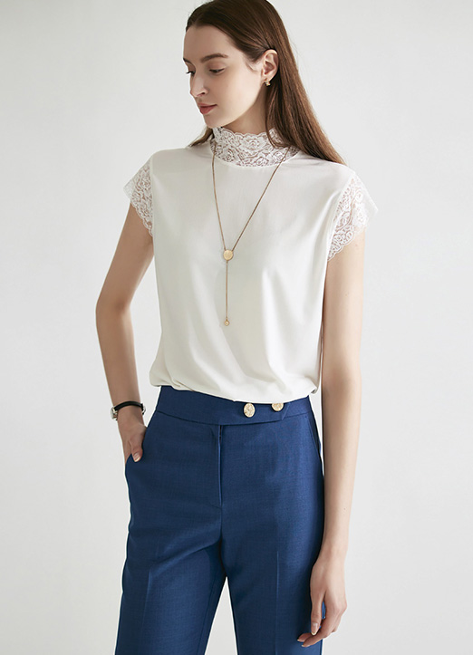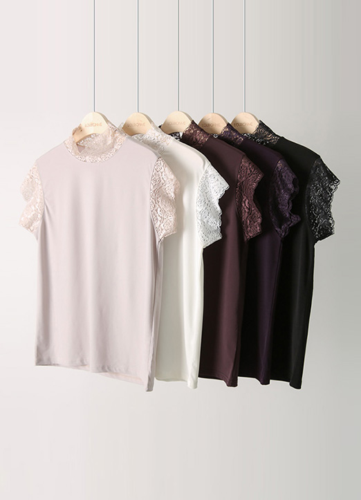 [THE ONME] レースネックフレンチスリーブプルオーバー bl24835