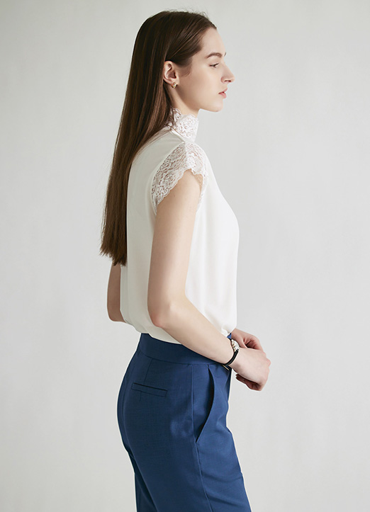살짝 올라오는 하이넥에 캡소매 디자인 부분을