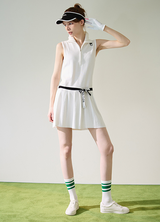 [QoG] 配色リボンポイントノースリーブプリーツワンピース op25263
