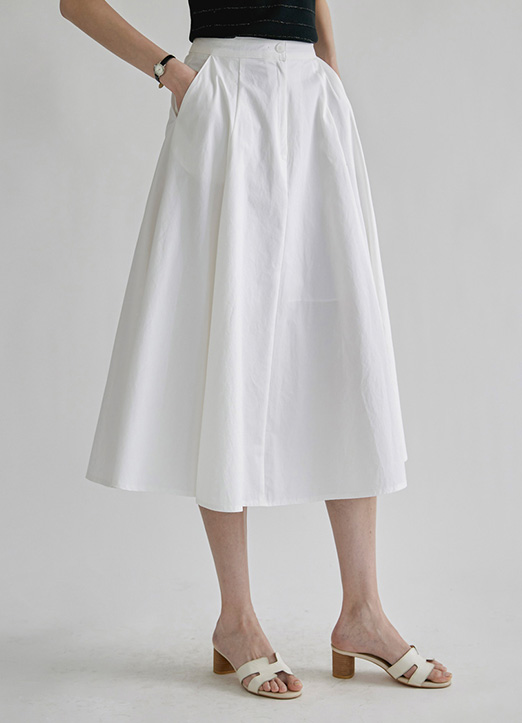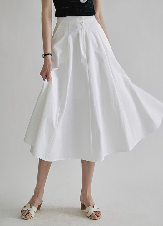 여성스러운 실루엣을 선사하는 롱 면스커트
