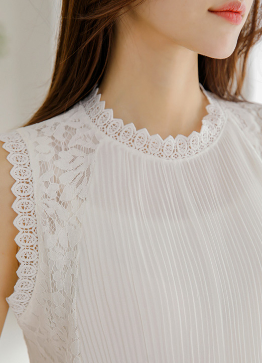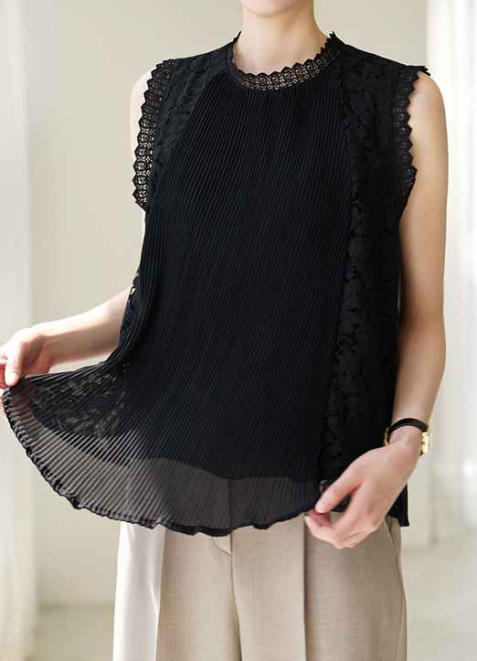 【企画特価】ノースリーブレース切り替えプリーツブラウス bl25363
