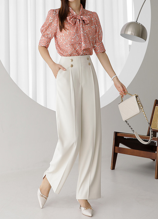 더블 골드 버튼으로 고급스러운 세미와이드 슬랙스에요 :)