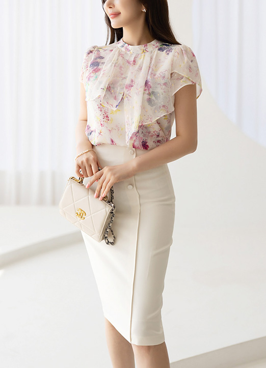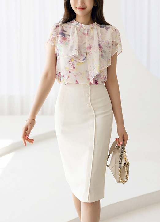 ウェーブ切り替え3ボタンタイトスカート sk25603