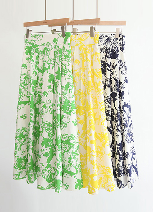 リネンブレンドフラワープリーツスカート sk25755